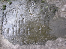 Auf der stark verwitterten Grabinschrift ist das THOR HASE... noch gut zu entziffern.
