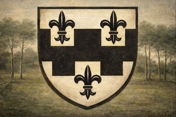 as Wappen der Familie zeigt einen Gegenzinnenbalken, zwischen dessen Zinnen oben zwei und unten eine Lilie zu sehen ist.