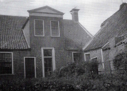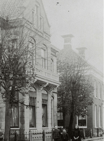 Auf einer Postkarte aus der Zeit um 1900 sehen wir das Haus von der Straßenseite aus mit einer Tür in der Mitte und drei großen Fenstern auf beiden Seiten. Foto: Sammlung J.P. Koers1