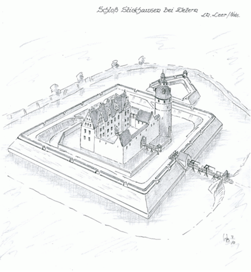 Zunächst bestand die Burg Stickhausen aus einem Steinhaus, das mit einem Graben umgeben war.
