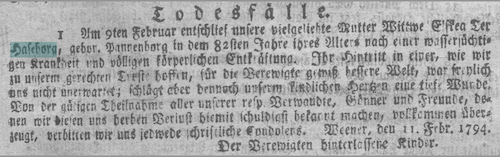Ihre MutterElske Lucas Pannenborg wurde am 31.7.1712 in Weener geboren und stammte aus einer angesehenen Familie.